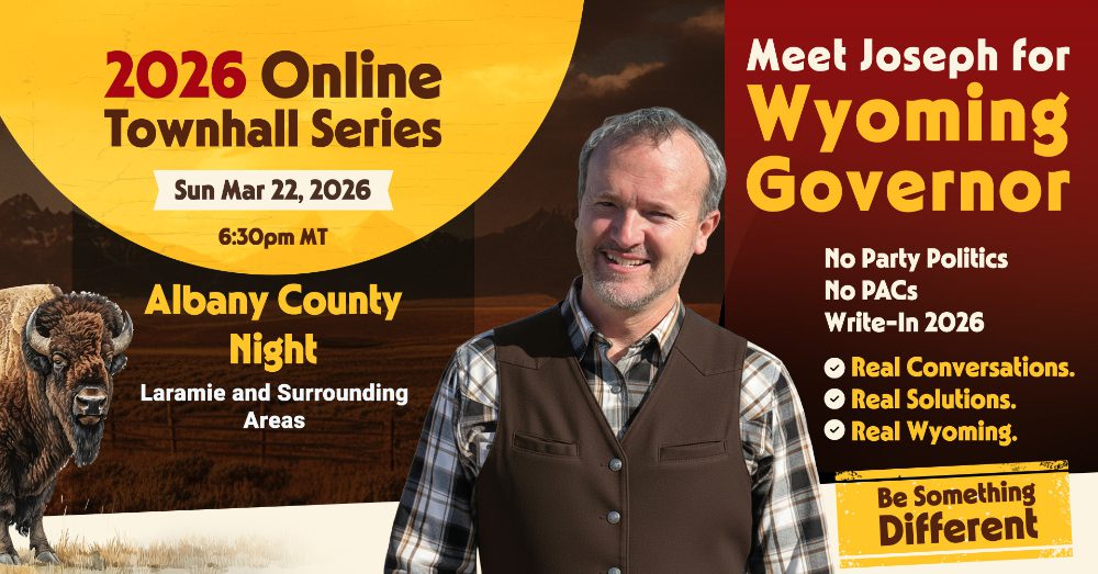 This isn’t about politicians talking at people — it’s about Wyoming talking with each other. Joseph is running as an unaffiliated write-in candidate for Governor in 2026, because real freedom doesn’t need permission. These townhalls give every community a voice, especially those who’ve been overlooked by party machines and political elites.